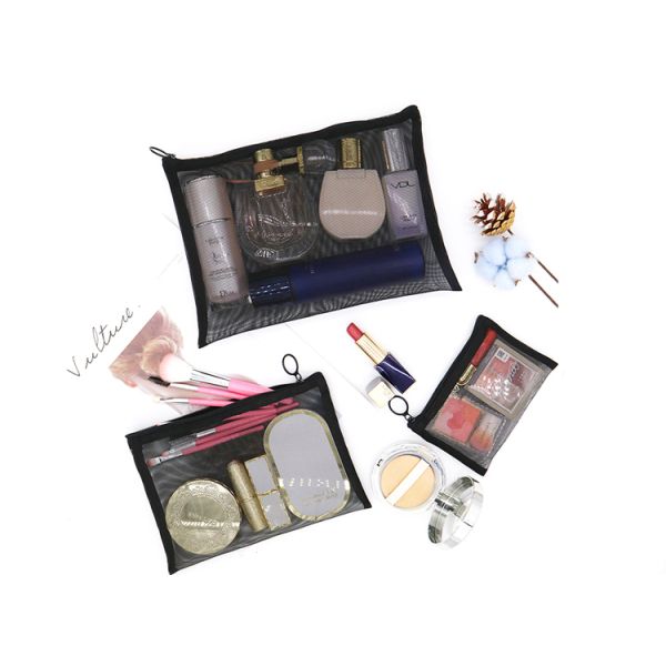 Simple small portable different capacity mesh and lace material pouch cosmetic makeup bag Images |